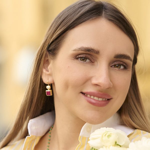 Anel em prata dourada e cristais rosa fucsia (Daisy Collection)