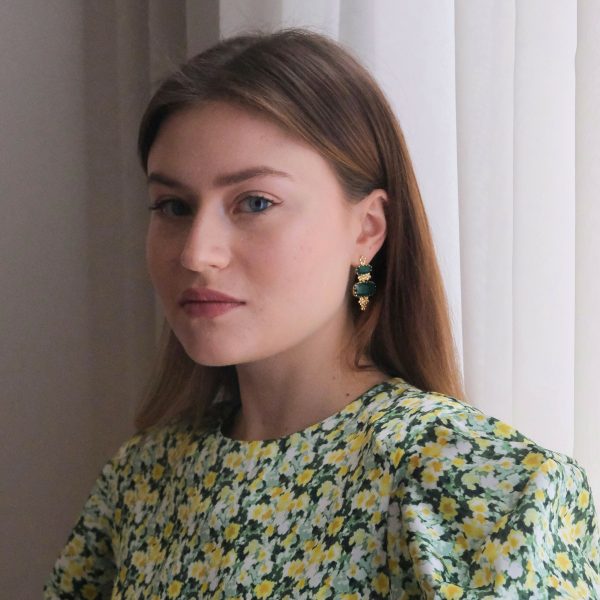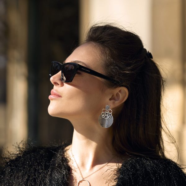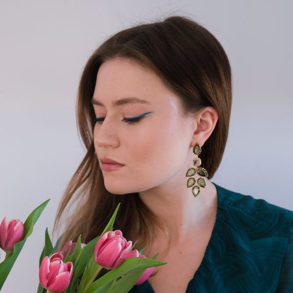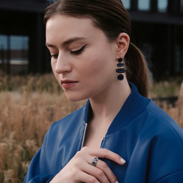 Anel prata oxidada, ouro 9kts e cristais de rocha (rosácea)