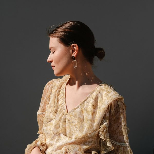 Anel prata oxidada, ouro 9kts e cristal de rocha (retângulo)