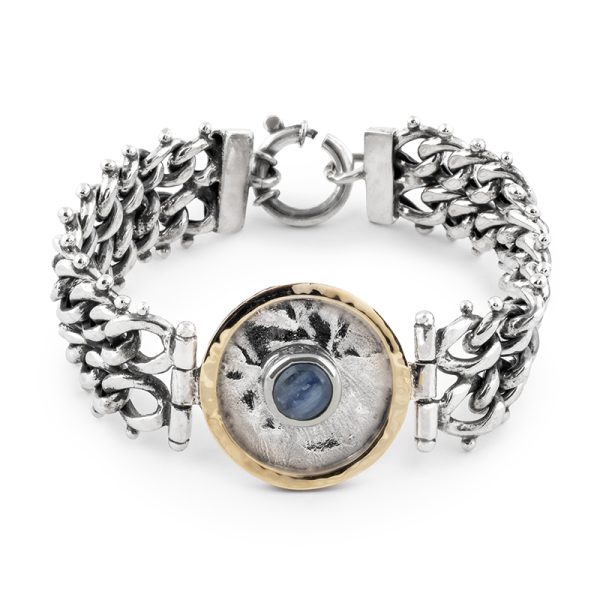 Anel em prata dourada e cristais azul topázio (Daisy Collection)