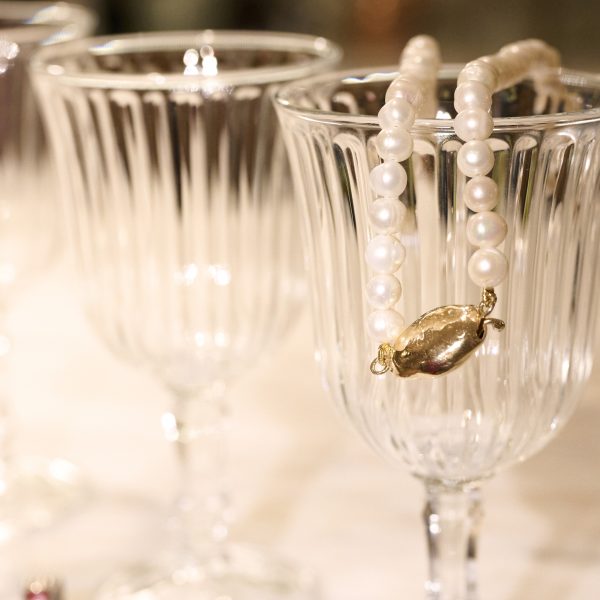 Anel em prata dourada e cristais branco nuvem (Daisy Collection)