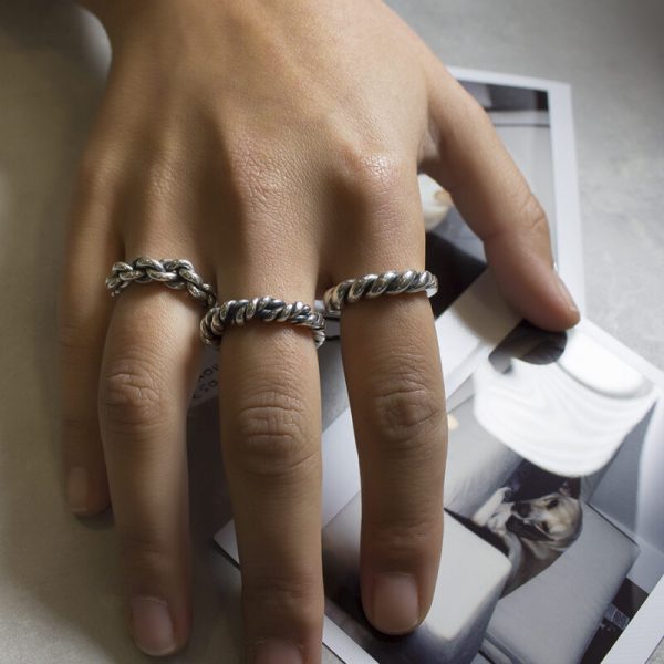 Anel prata oxidada Rope