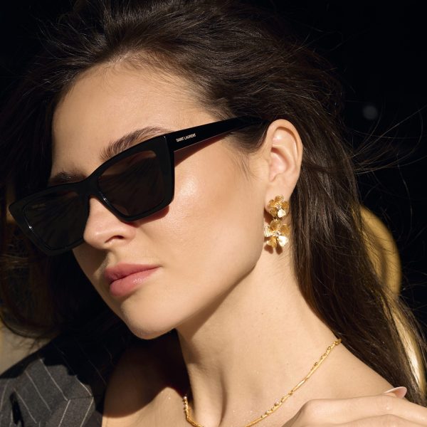 Brincos dourados ramo de folhas e flores (Silvela collection)