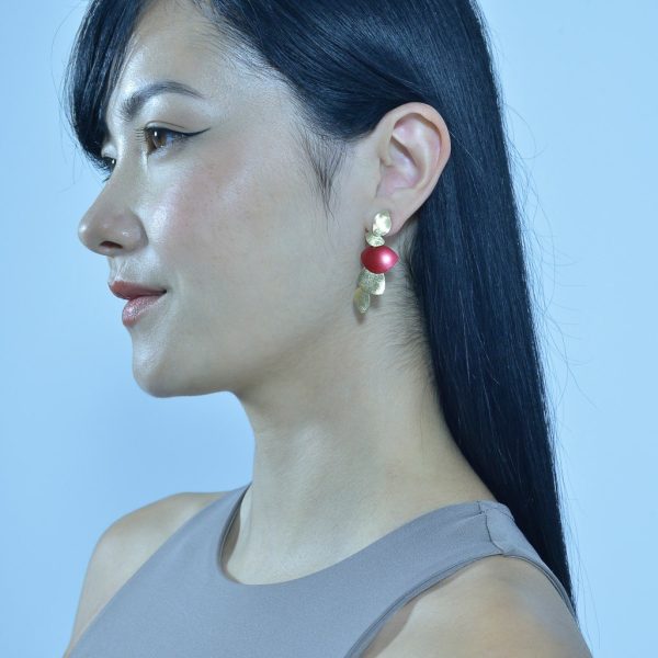 Brincos em prata dourada irregulares vermelho (Bamboo collection)