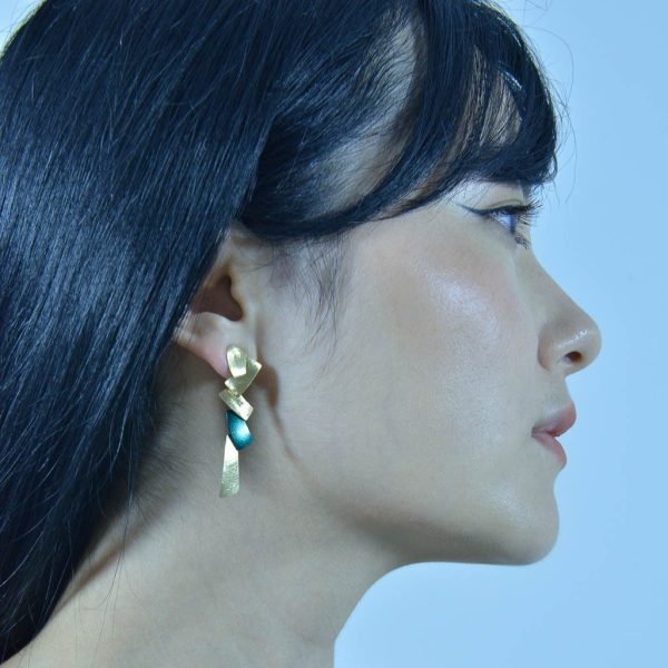 Brincos em prata dourada irregulares verde (Bamboo collection)