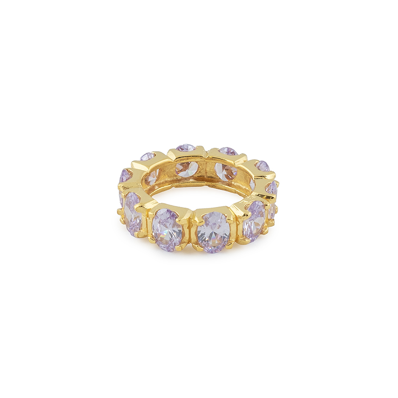 Aliança em prata 925 plaqueado ouro 24k com 10 ou 11 cristais ovais cor malva