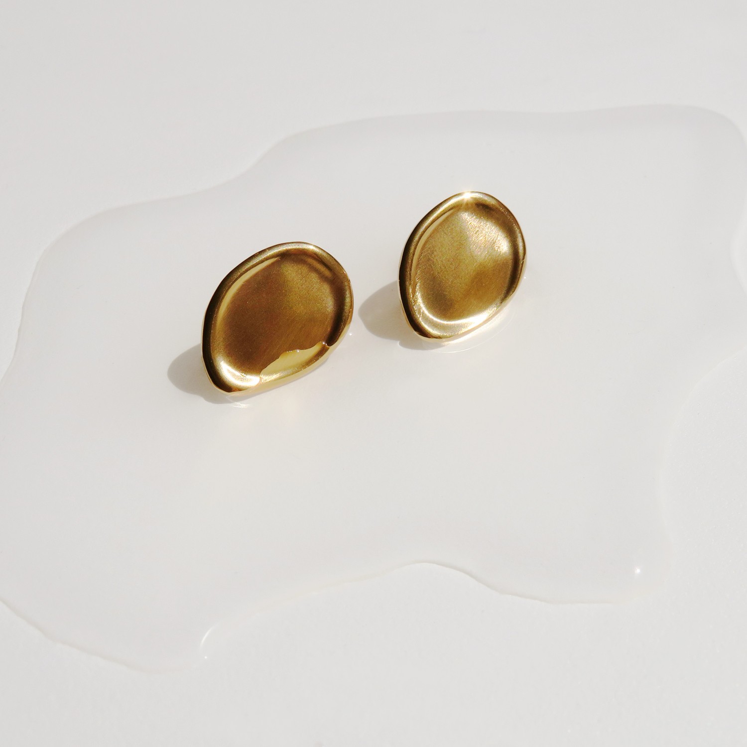 Brincos em metal com um misto de brilho e mate banhado a ouro 24kilates