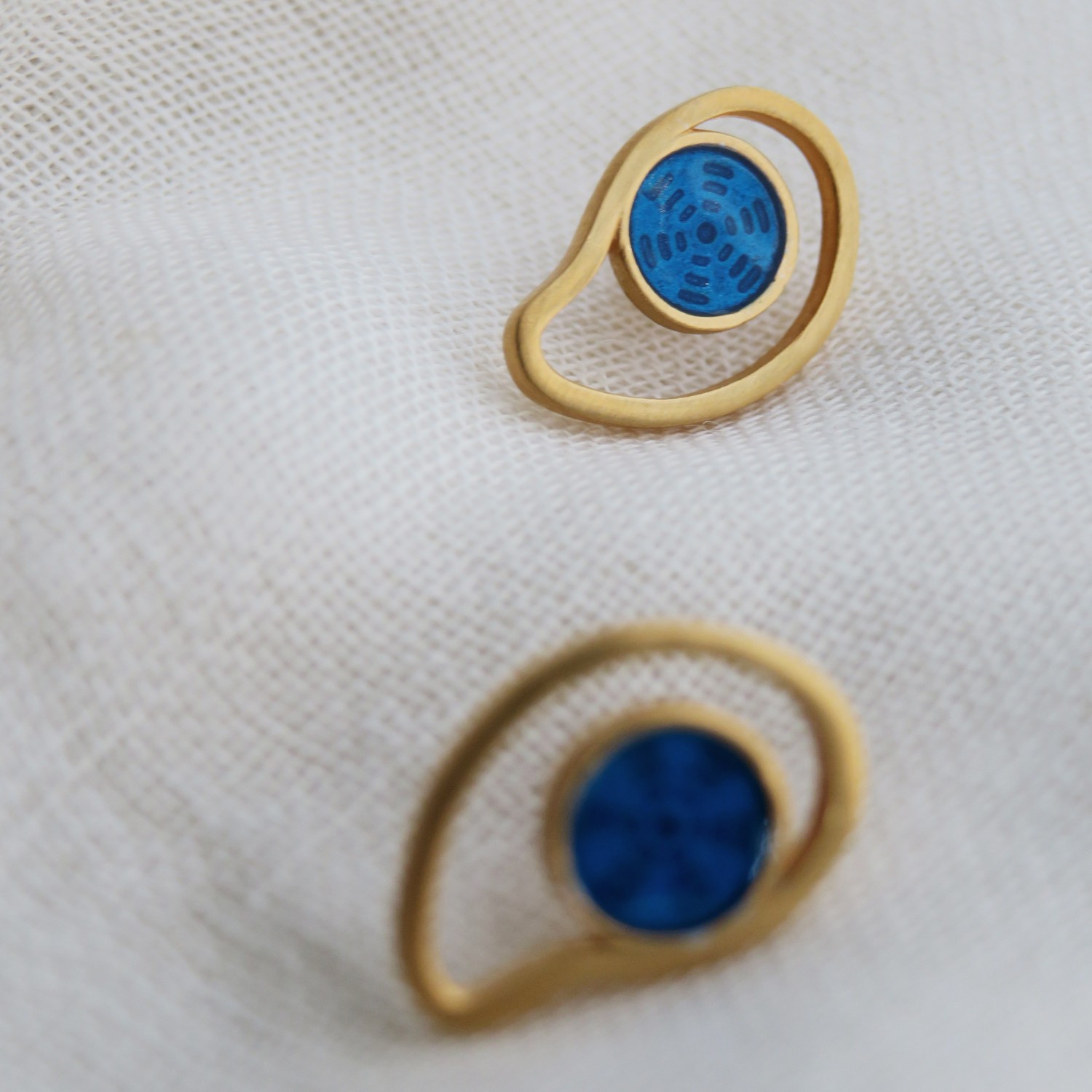 Brincos em metal banhado a ouro 24kilates com esmalte vitríco em 2 tonalidades de azul
