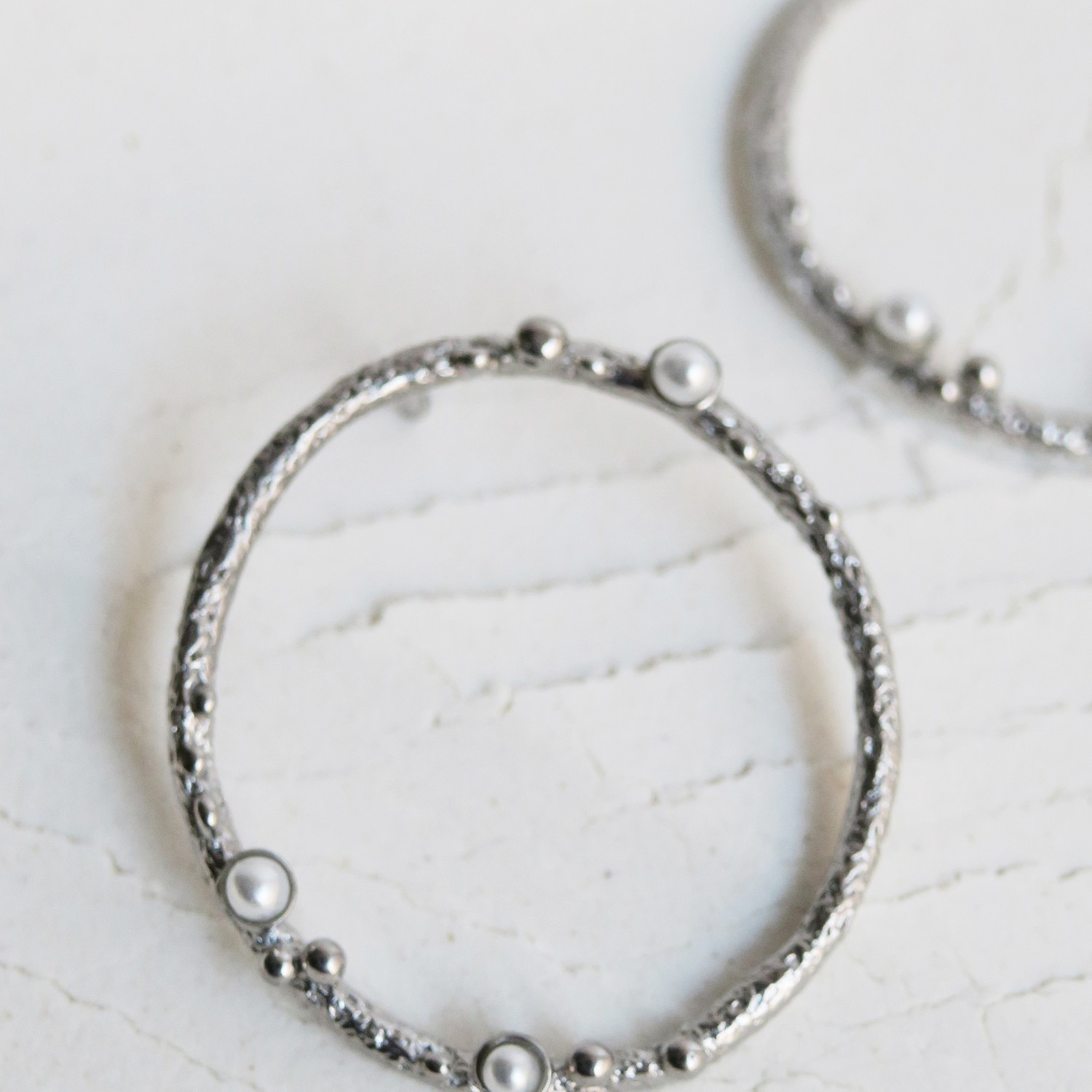 Brincos de prata 925 banhado a platina e mini perolinhas resinadas
