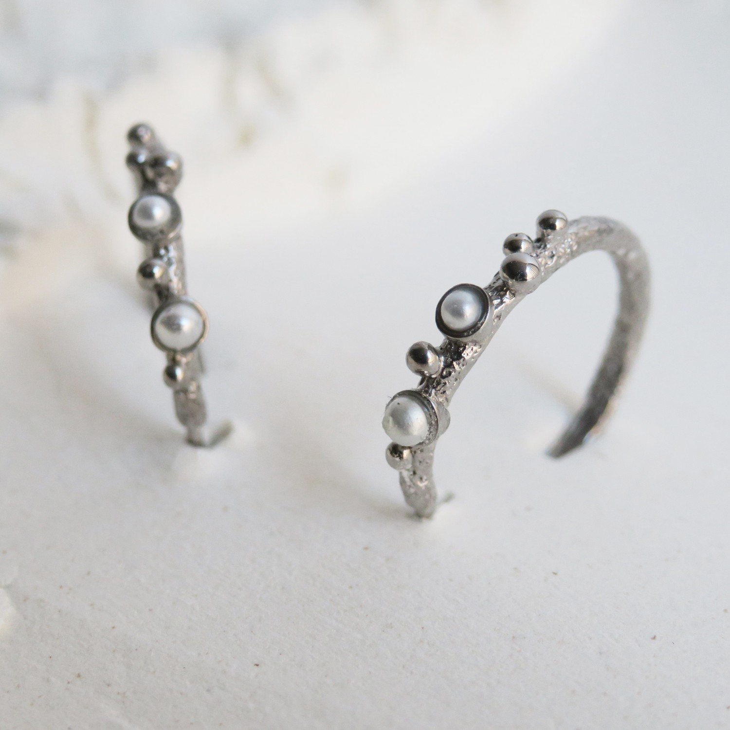 Brincos de prata 925 banhado a platina e mini perolinha resinada
