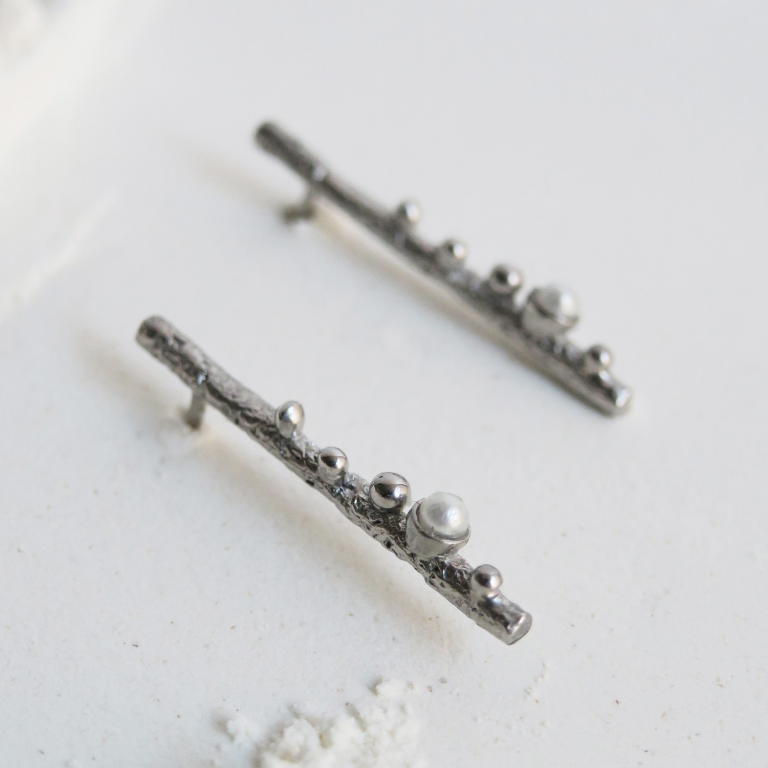 Brincos de prata 925 banhado a platina e mini perolinha resinada