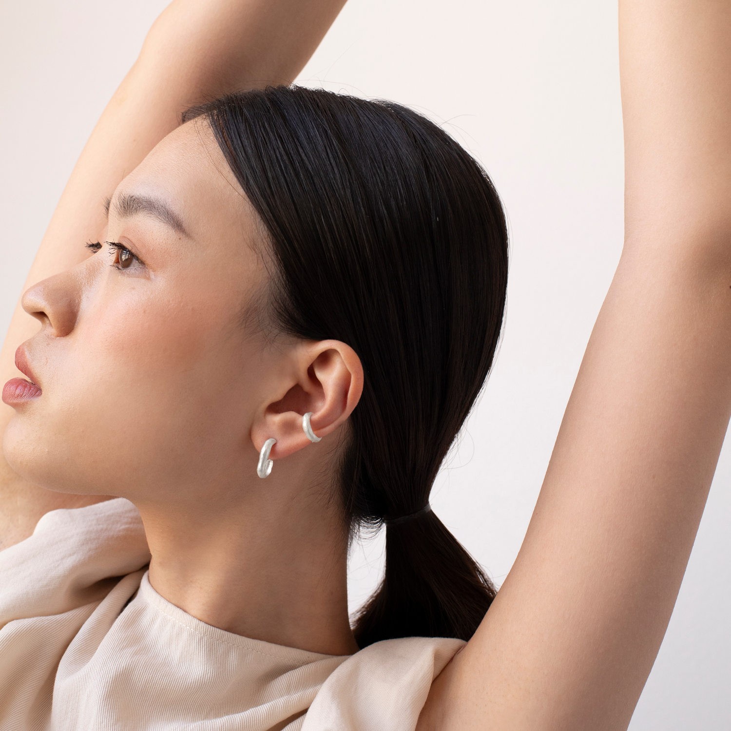 Brincos em prata clara 925 platinada com um misto de brilho e mate