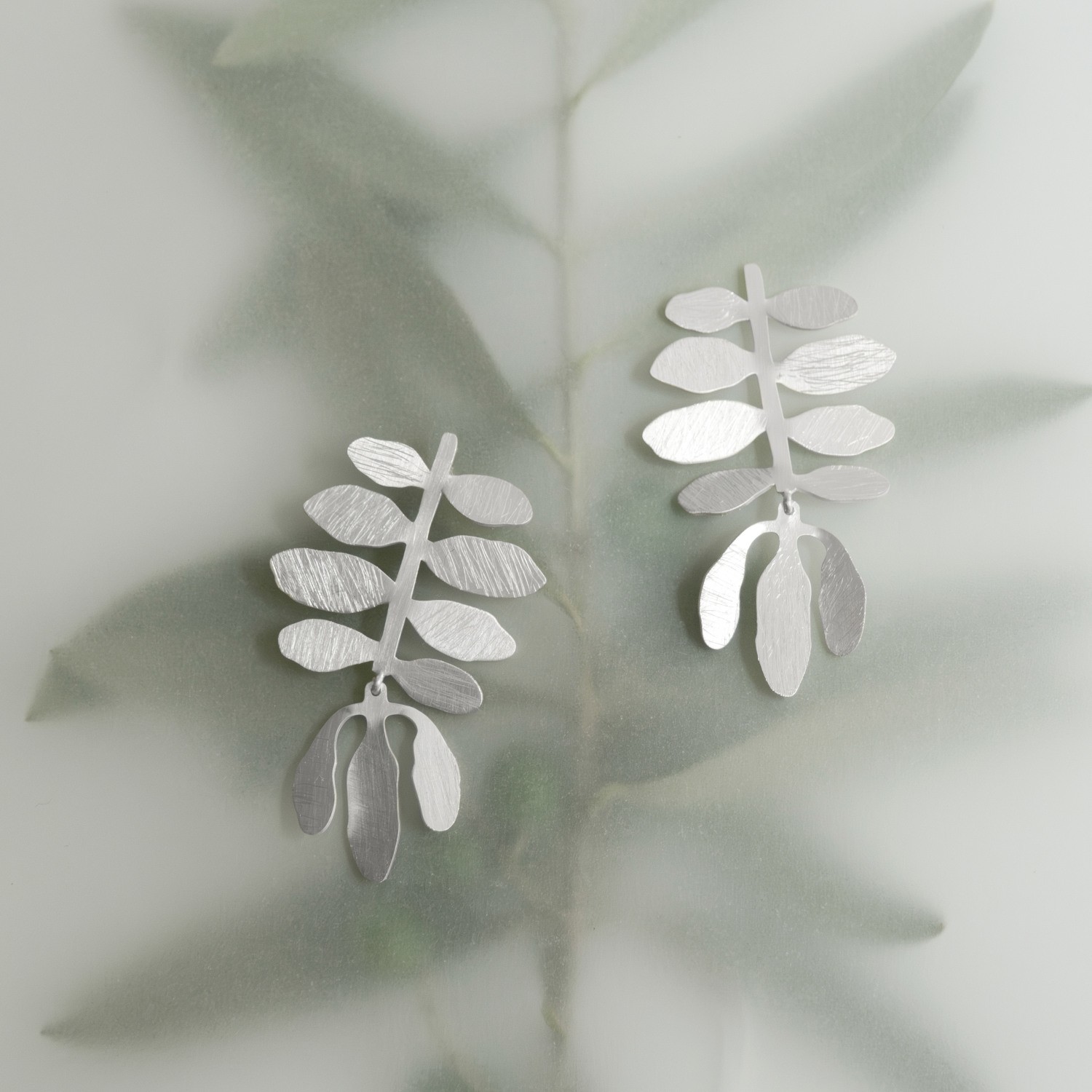 Brincos prata clara ramo de folhas e flores (Silvela collection)