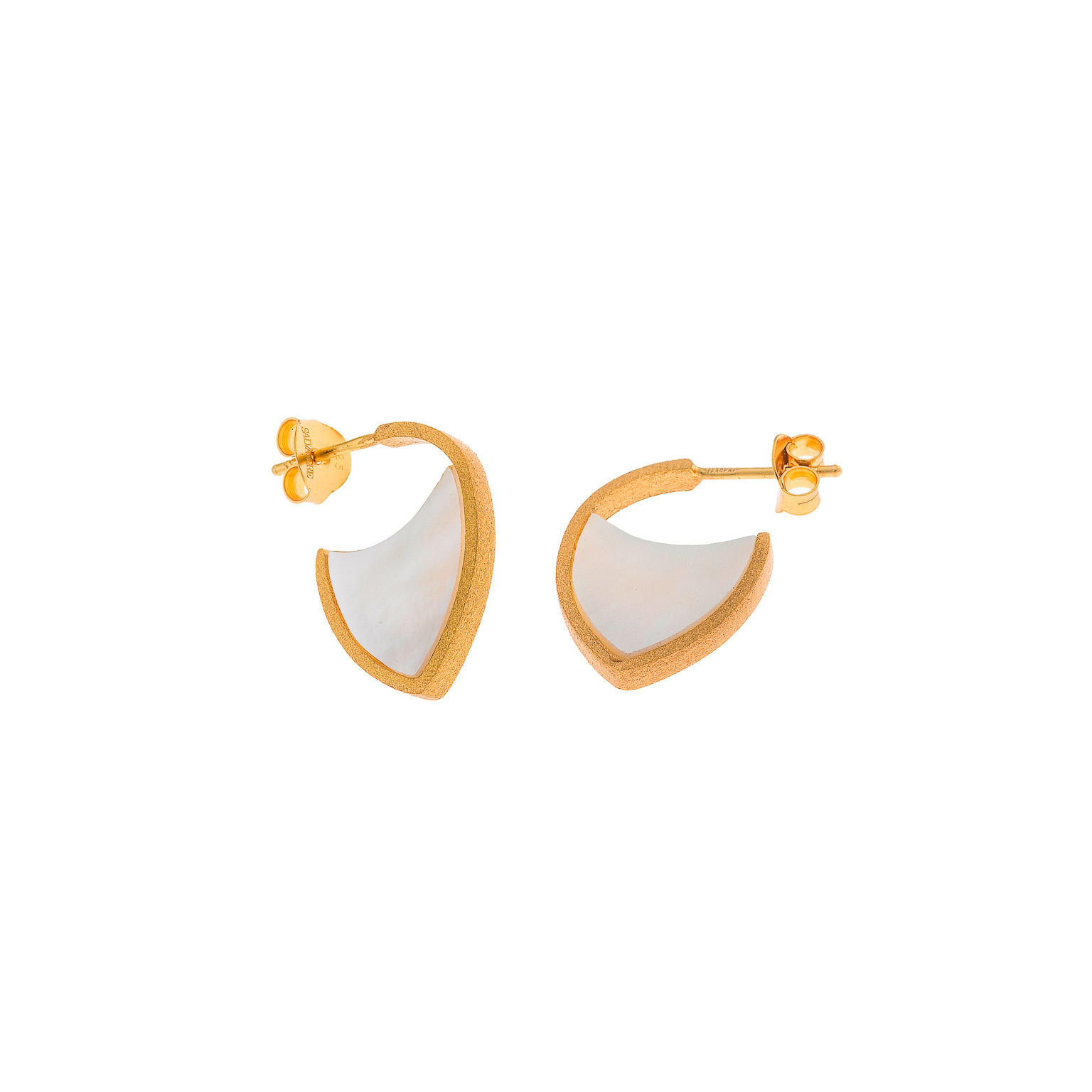 Brincos em prata 925 plaqueado ouro acabamento mate e madrepérola