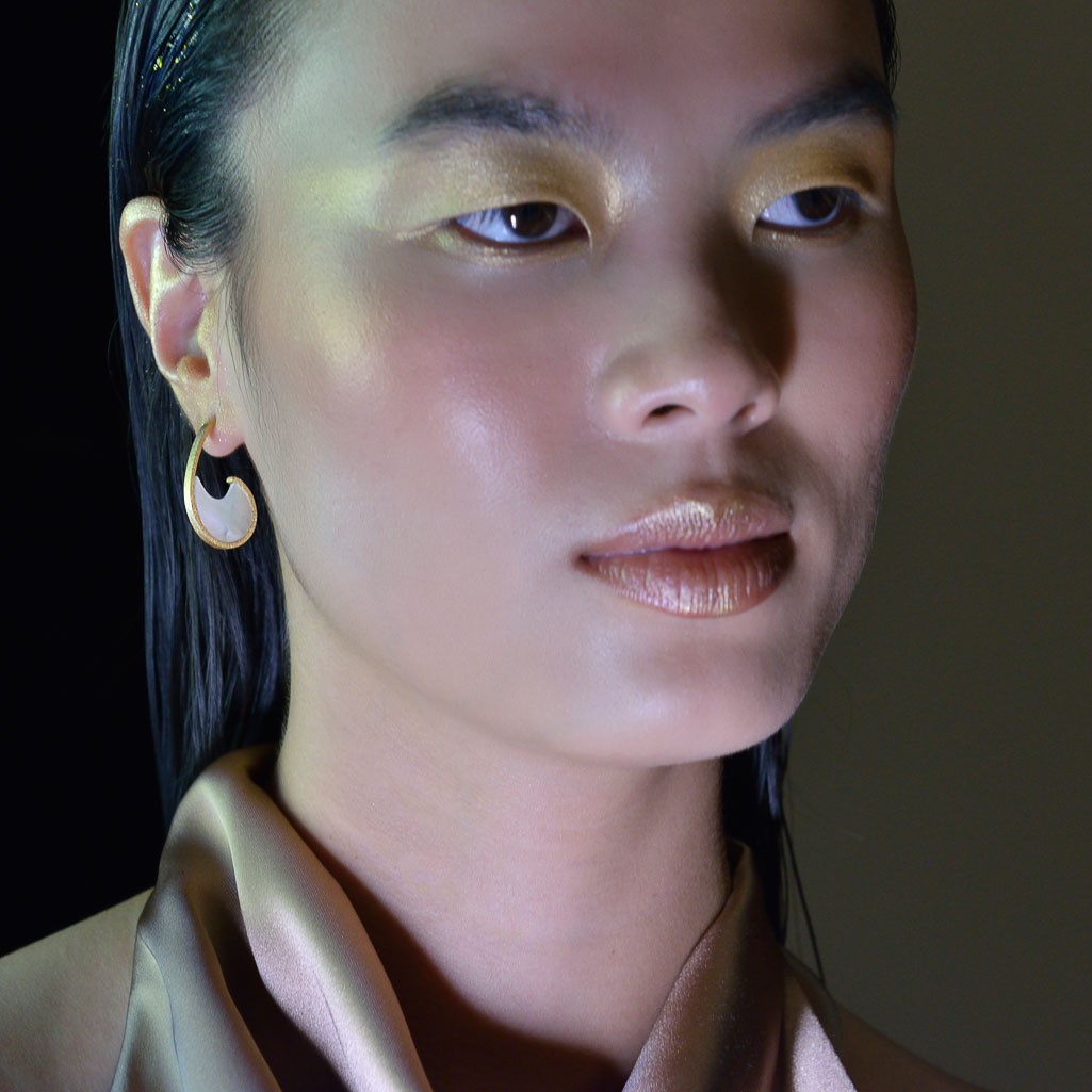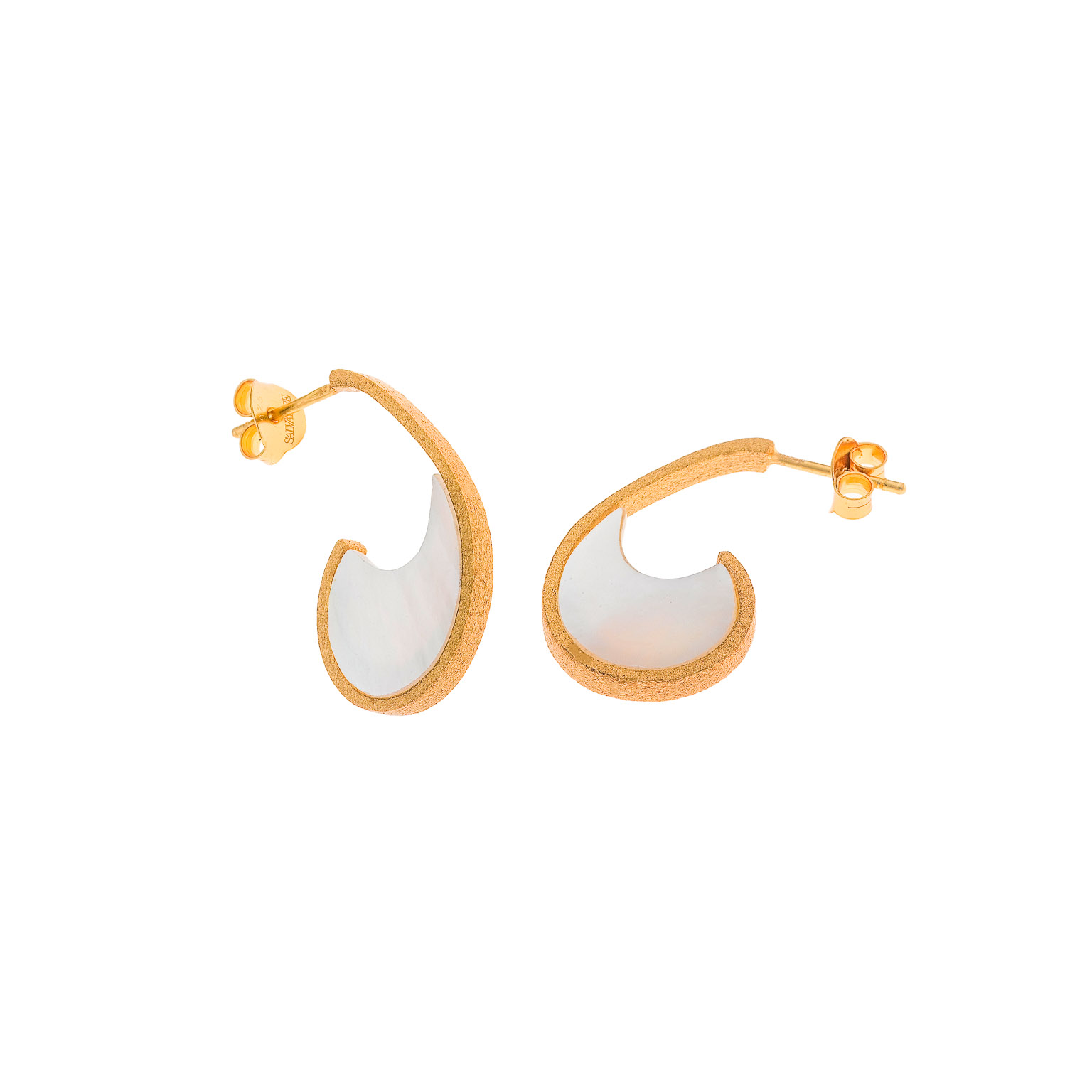 Brincos em prata 925 plaqueado ouro acabamento mate e madrepérola