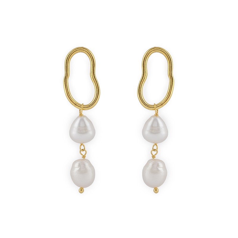 Brinco em prata 925 plaqueado ouro com pérolas barrocas