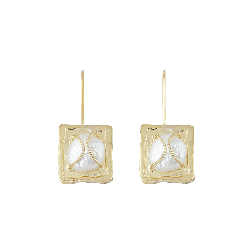 Brinco em prata 925 plaqueado ouro com pérola barrocade formato moeda