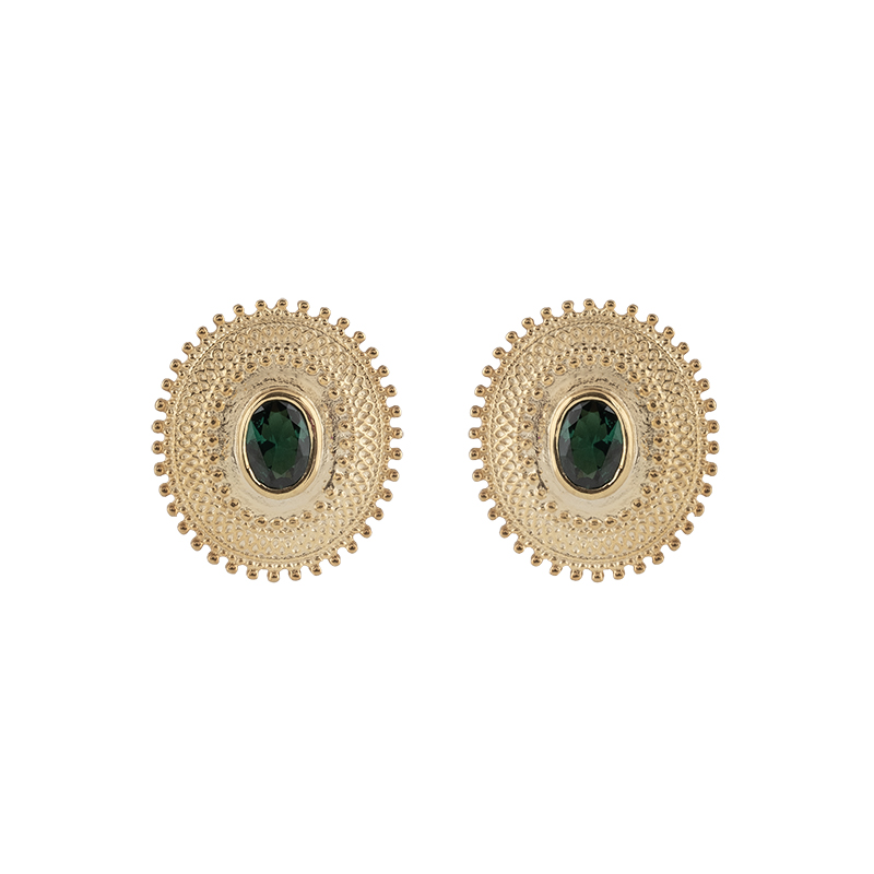 Brincos em prata dourada com 1 cristal cor verde esmeralda