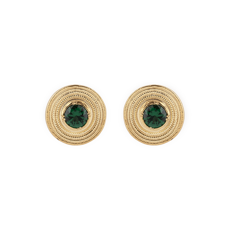 Brincos em prata dourada com 1 cristal verde esmeralda translúcido