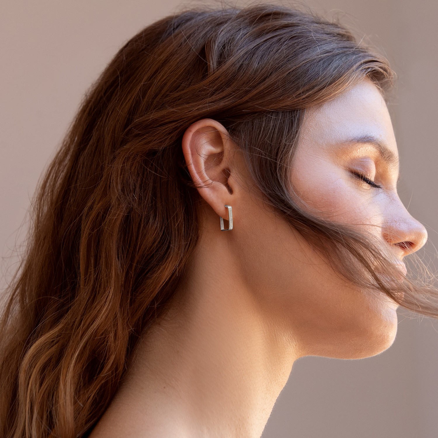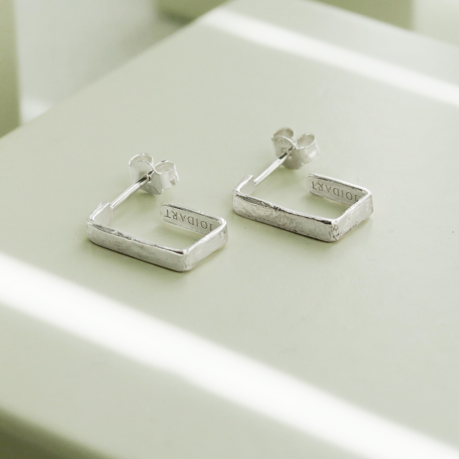 Fitas de metal com diferentes texturas que lembram as cascas das arvores , convertidas em argolas retangulares