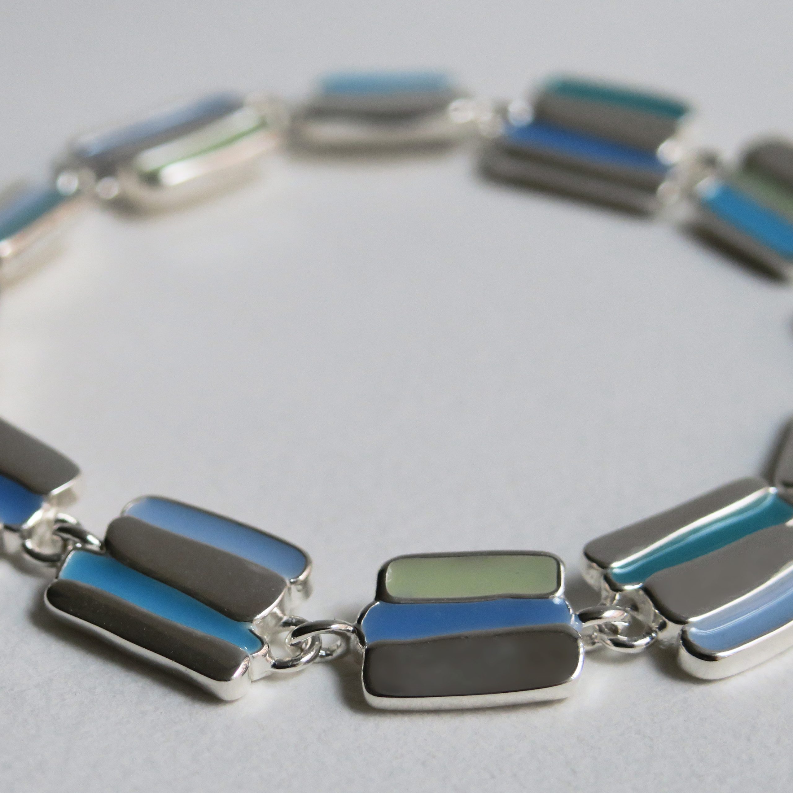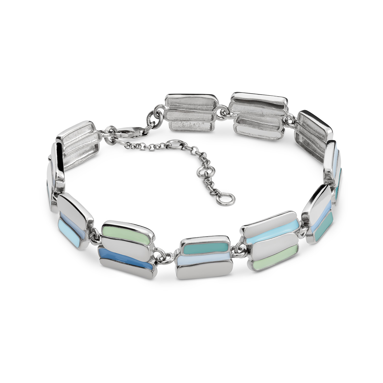 Pulseira em prata 925 com acabamento platinado e esmalte tons azuis