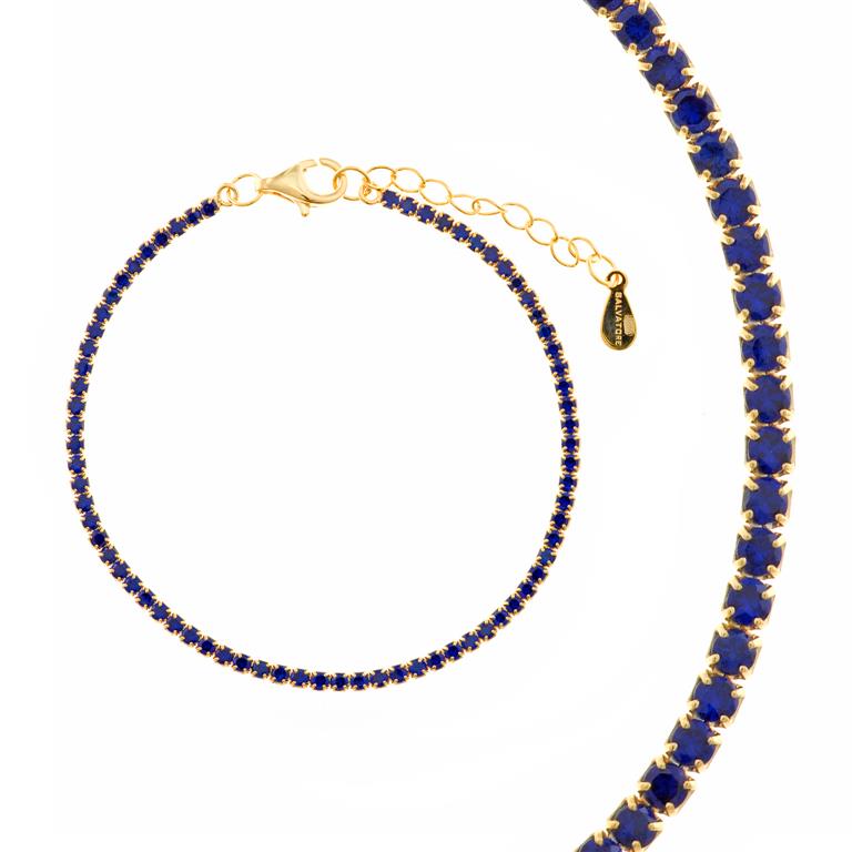 Pulseira prata dourada com zirconias azul safira (Blink collection)