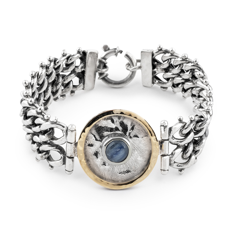 Pulseira prata oxidada e ouro 9kilates Mixed (cianita)