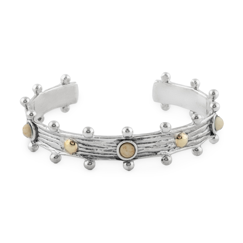Pulseira prata oxidada, ouro 9kts e marfim vegetal