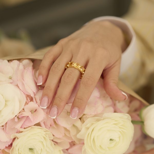 Anel em prata dourada e cristais cor amarelo ambar (Daisy Collection)